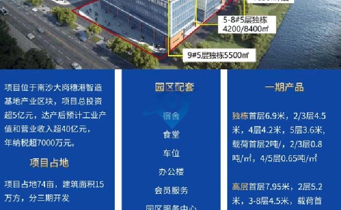【产业区域】:南沙7大产业区块蝶变中,汇聚科技创新资源,崛起新兴产业势力,架起开放合作桥梁,推动南沙产业高速发展项目位于南沙大岗穗港智造基地先进制造高地,被定位为南沙新区西部经济发展的重要引擎,项目定位以智能制造、消费电子、电子商务等相关产业集群为主,汇聚科技创新资源,崛起南沙新兴产业新势力,助力南沙产业格局蝶变。