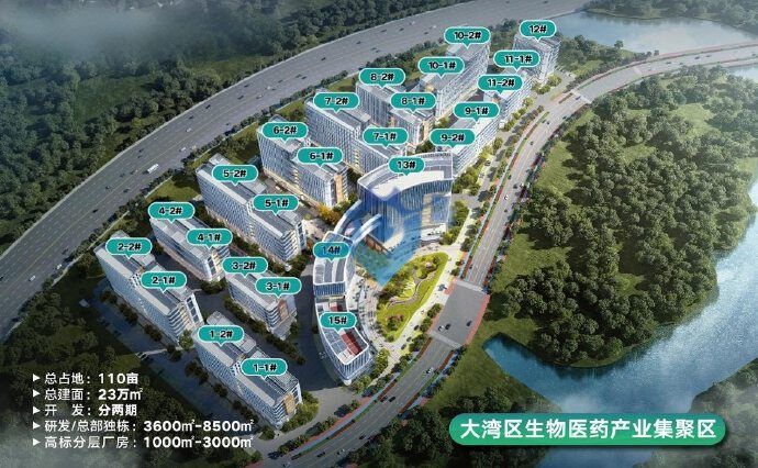 所在广州知识城国际生物医药创新园,规划面积3.3平方公里,引进百济神州、康方生物、诺诚健华、GE-龙沙、赛默飞、恒瑞医药、威斯克、达安基因等40多家顶尖生物医药项目,总投资额超200亿,达产产值超千亿元,大分子生物药原液产能超60万升,将建设从研发孵化、中试检测、临床应用到大规模制造和销售为一体特色生物医药园区,构建全球顶尖生物制药产业集群。
