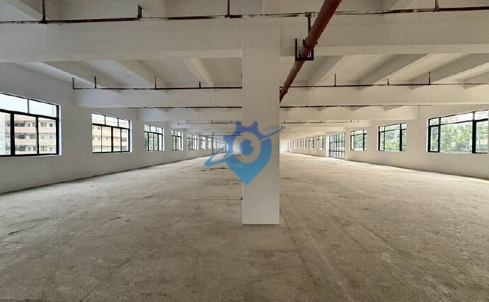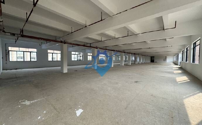 水泥混凝土框架结构,楼面承重每平方1.5吨,厂房一楼层高6米,楼上4.5米,厂房方正实用,全新金刚砂地面,厂房四周无遮挡,采光好。