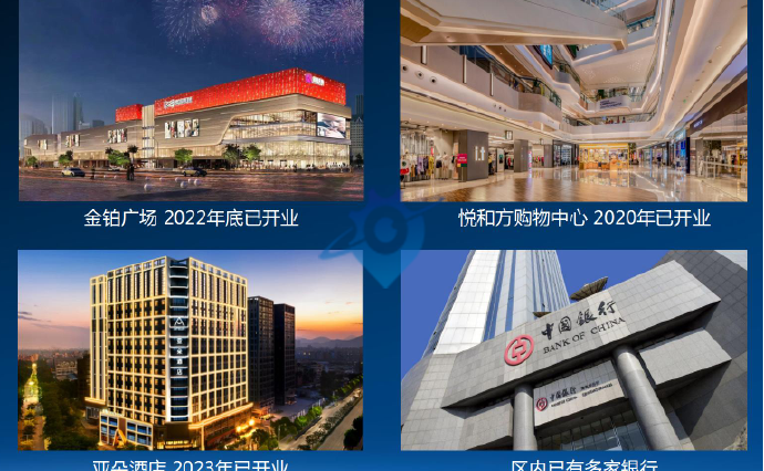 名品奥莱、国际五星级酒店在建金铂广场、悦和坊、亚朵酒店等商业配套繁华银行、超市、公寓、公园等一应俱全企业科技创新平台、政务服务平台等公共服务成熟